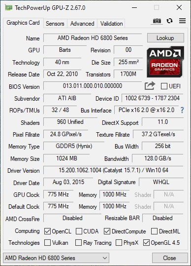 AMD Radeon HD 6850 GPUZ